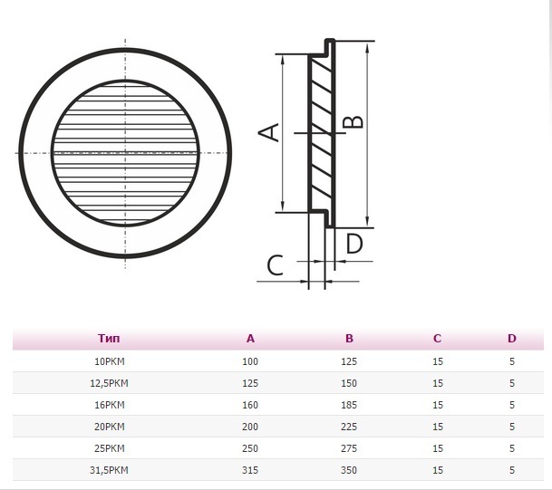 Серия РКМ. Решетки с горизонтальными наклонными жалюзи, защитной сеткой и фланцем, выполнены из алюминия. Применяются для наружного монтажа.