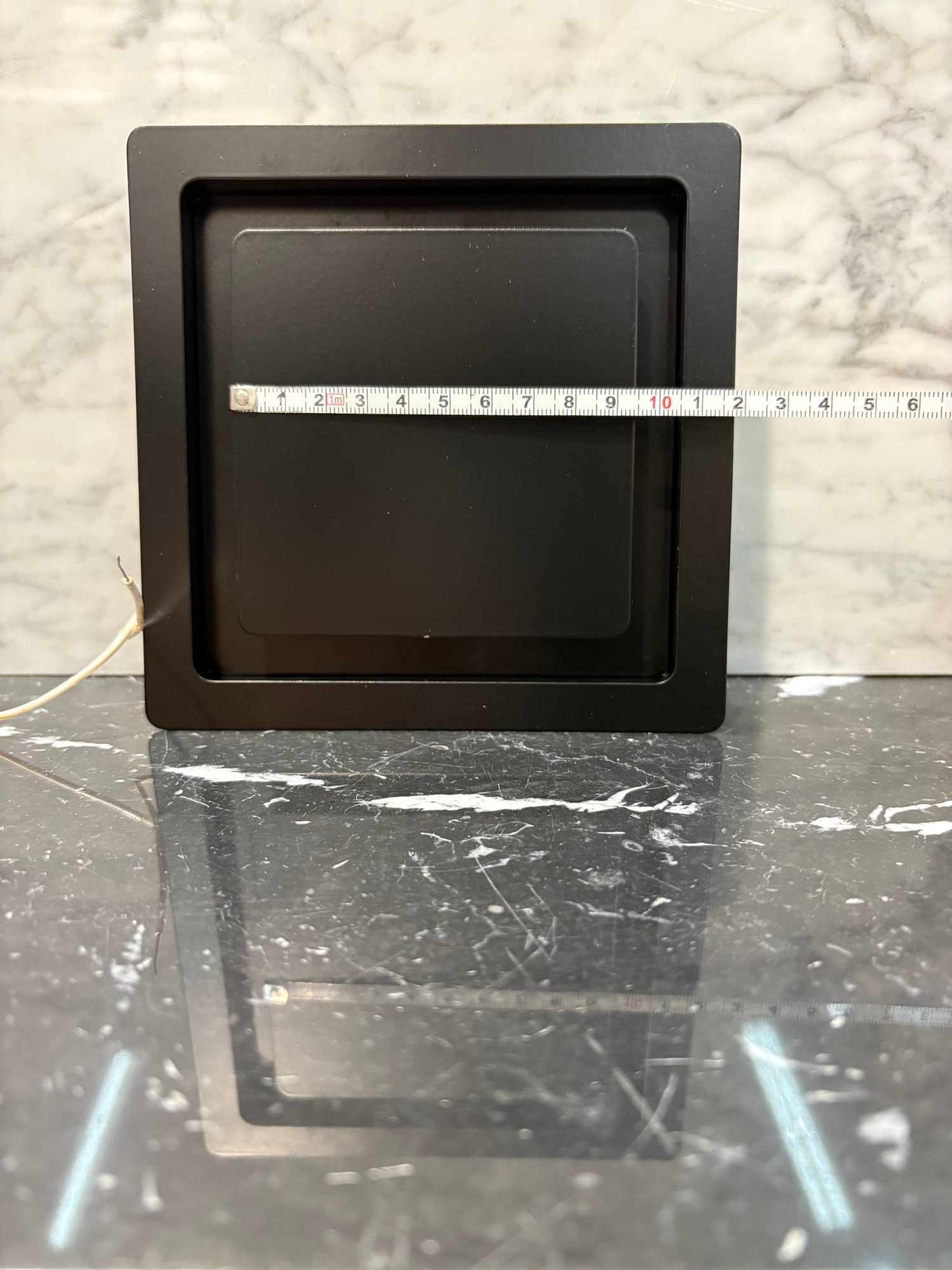 Рамка прикрепляется к стене или полотку при помощи саморезов или клея, а верхняя часть с глухой панелью фиксируется к рамке при помощи неодимовых магнитов.