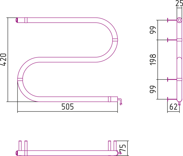 Полотенцесушитель электрический Стилье ЭПС S-образный 420x500 (40 Вт)