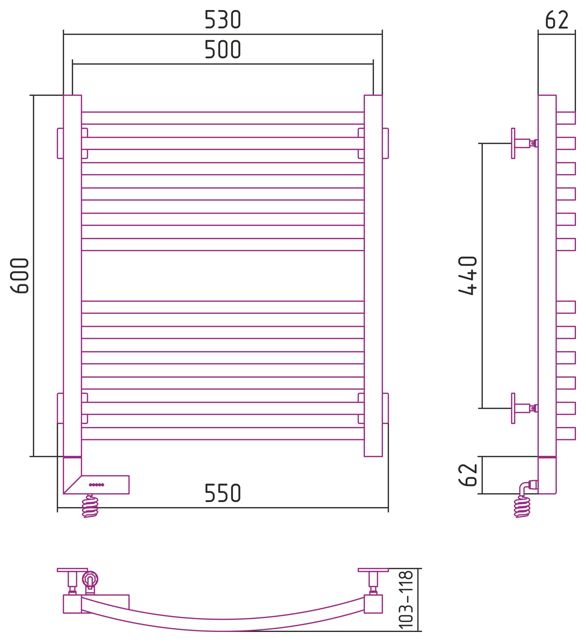 Полотенцесушитель электрический Сунержа Аркус 2.0 600x500