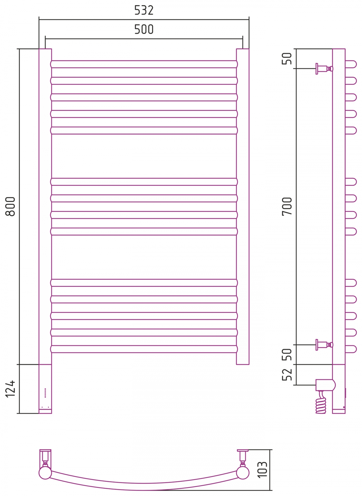 Полотенцесушитель электрический Сунержа Богема 3.0 800x500