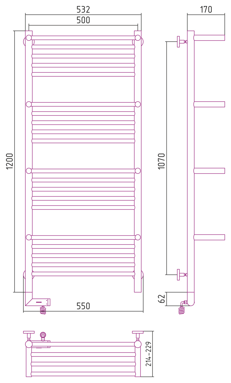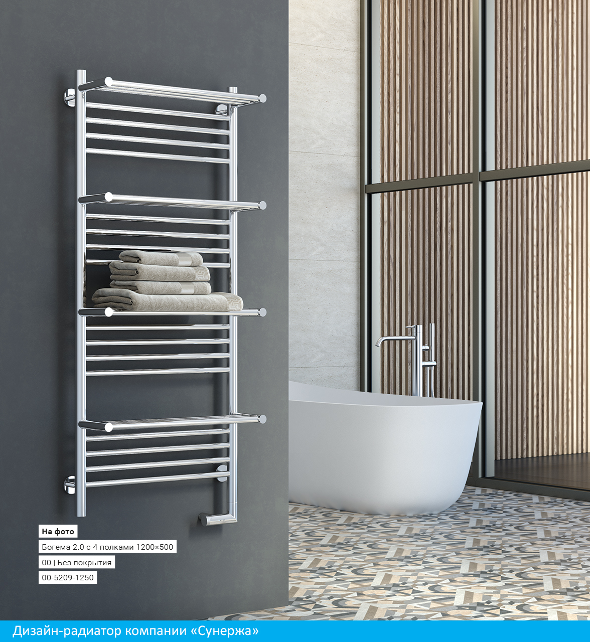 Полотенцесушитель электрический Сунержа Богема +4 полки 2.0 1200x500
