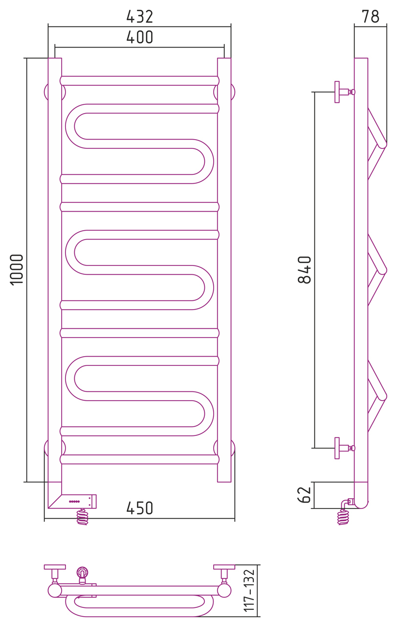 Внешние габариты (высота х ширина х глубина)(мм) : 1000x450x117-132