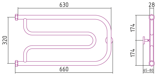 Высокий уровень производительности водяного полотенцесушителя Сунержа, модельного ряда «П-образный».