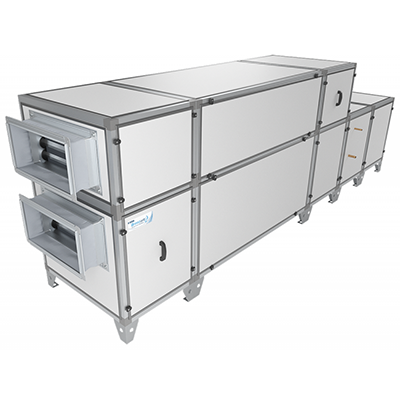 - Приточно-вытяжная установка напольного типа с противоточным пластинчатым рекуператором, системой защиты от замерзания.