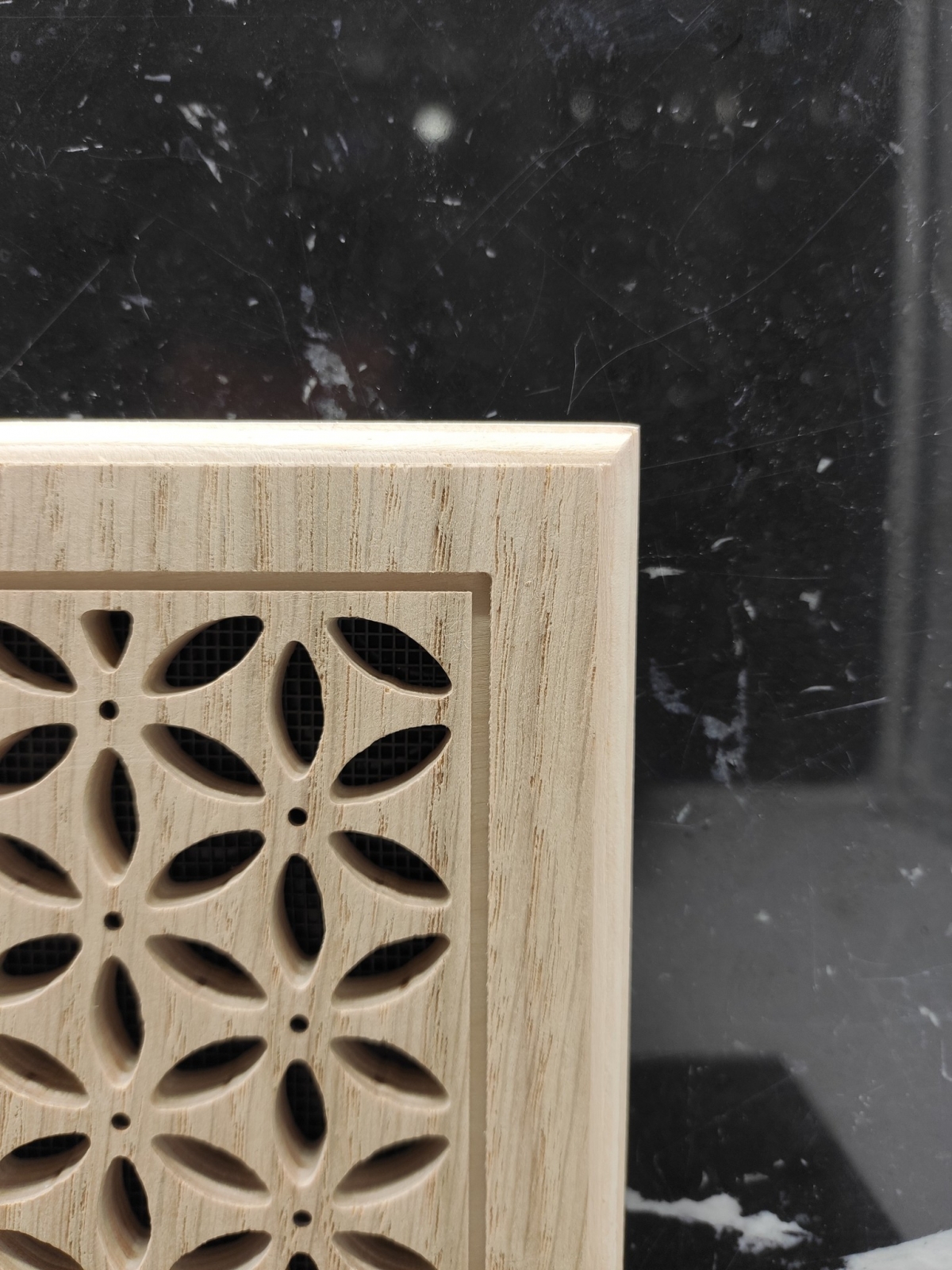 Деревянные решетки из дуба и березы. Основание сделано из листа березовой фанеры а лицевая сторона из дуба, со структрой дерева.