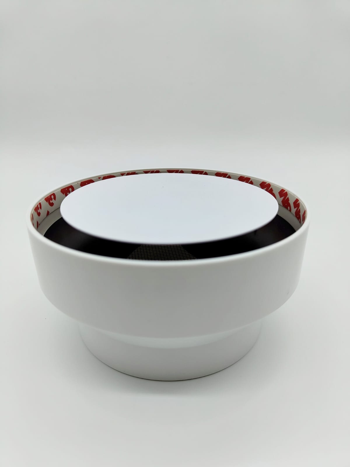 Диффузор состоит из пластикового перехода, металлической заслонкой, которой можно регулировать поток воздуха, либо полностью перекрыть его. К заслонке с помощью магнитов крепится декоративная круглая панелька, которую можно покрасить в цвет потолка. Так же по ободку диффузора имеется надёжный двухсторонний скот марки 3М, к которому крепится полотно натяжного потолка. Наши диффузоры оснащены москитной сеточкой, которая препятствует попаданию насекомых в помещение.