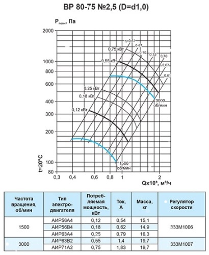 Вентилятор радиальный ВР 80-75 №2,5 (0,75кВт/3000об) Низкого давления